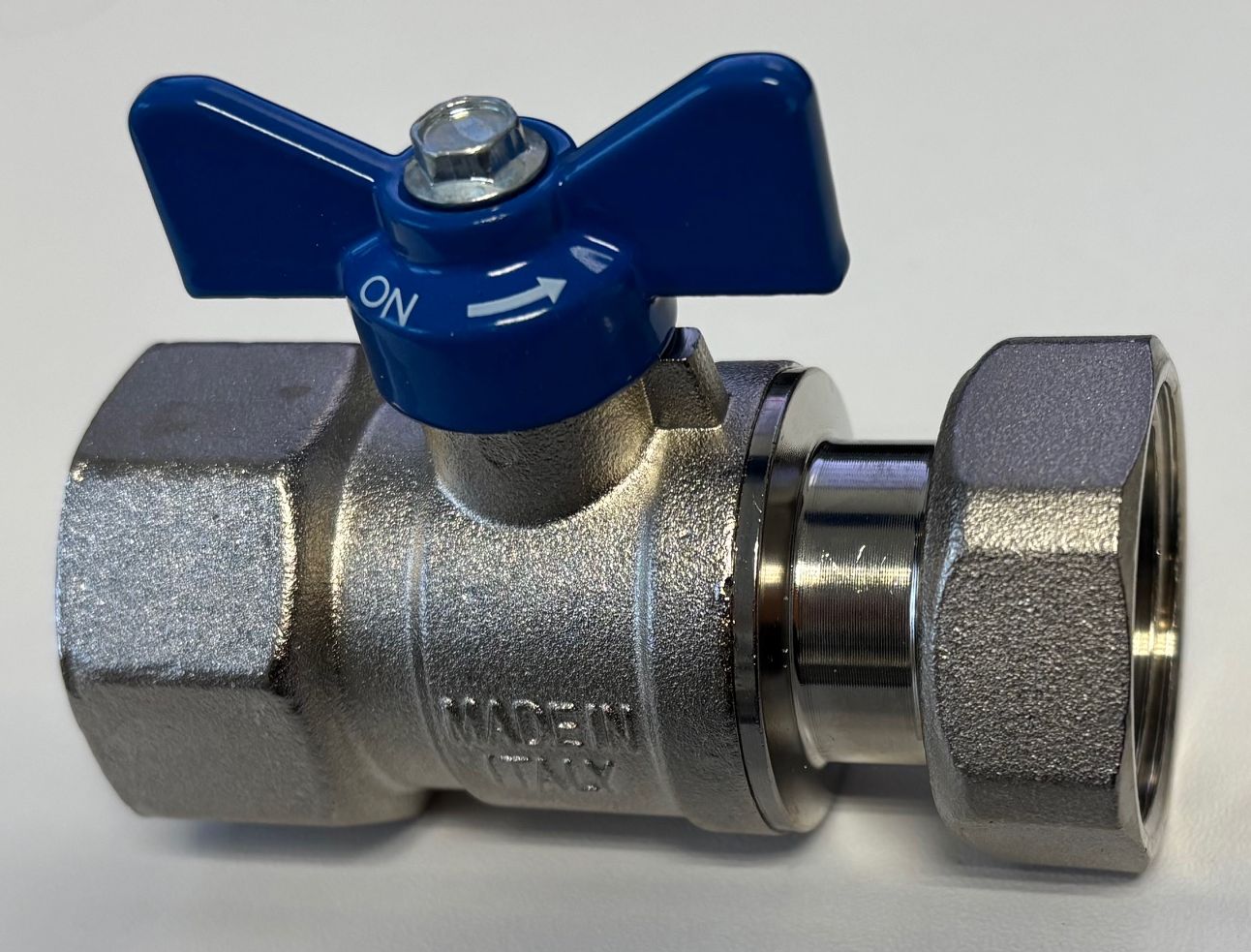 Kulový kohout SPIN 1"x1" s převlečnou maticí, s plochým těsněním, plnoprůtočný, 95°C, PN25, rozebíratelný