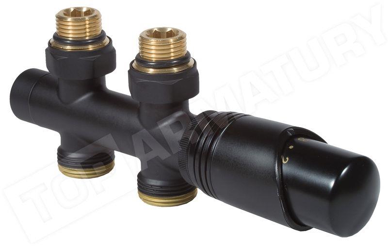 • Jednobodová armatura pro koupelnové radiátory,1/2" přímá, černá s termostatickou hlavicí