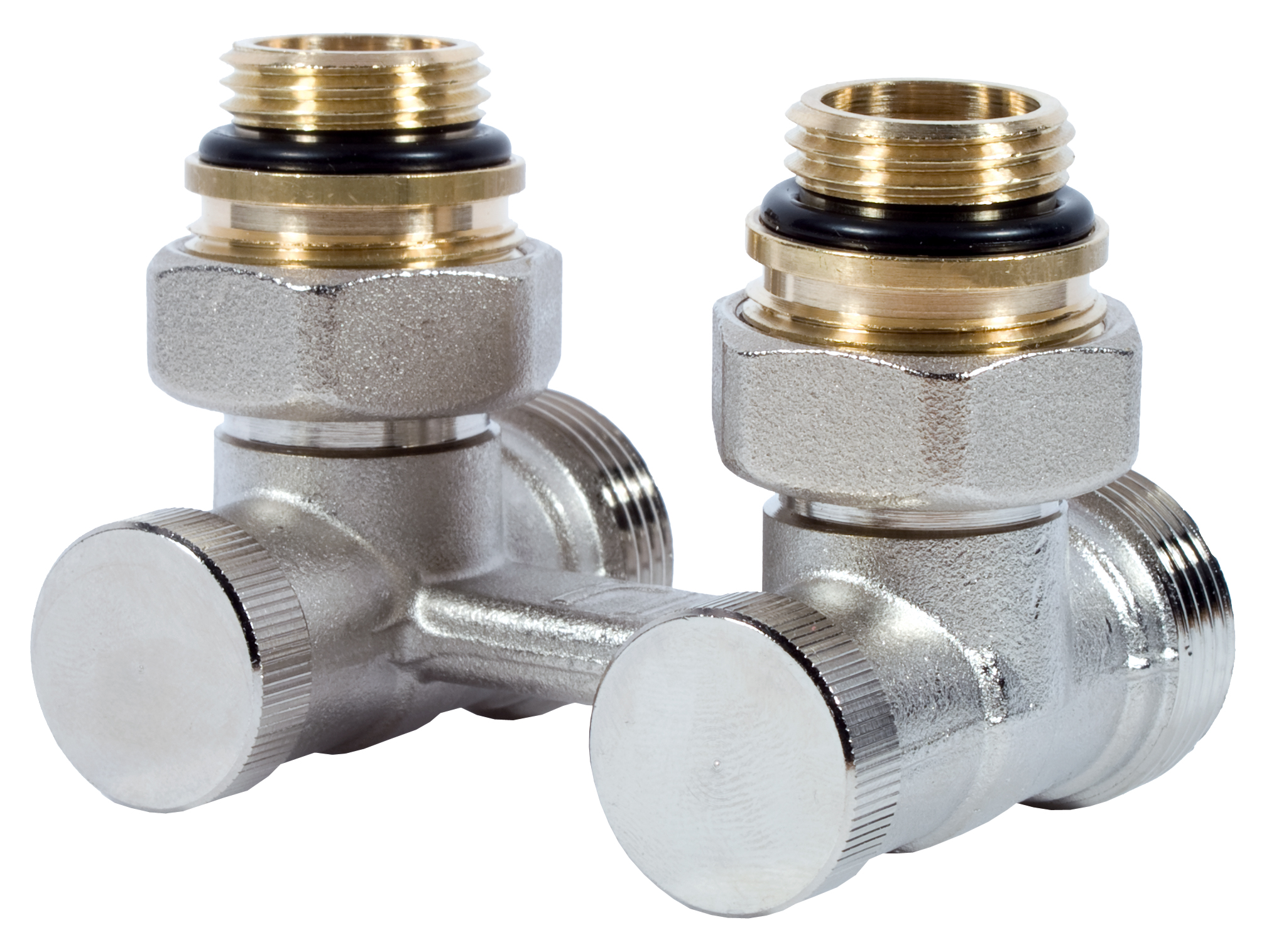 Uzavíratelné šroubení „H“ 1/2“x3/4“ přímé s kónickým těsněním pro VK radiátory, vřetena včetně 2ks adaptérů A12